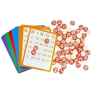 Yuanhe Bingo Cards Game Set – Includes 50 Bingo Cards and 500 Colorful Transparent Bingo Chips, for Bingo Games and Card Games