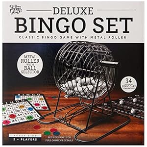 Deluxe Bingo Game Set,Bingo Set Includes Metal Cage,600 Mixed Color Plastic Chips,100 Large Cards,75 Bingo Balls,Plastic Masterboard, 2 Velvet Bag,Great for Adults Large Group and Parties