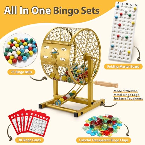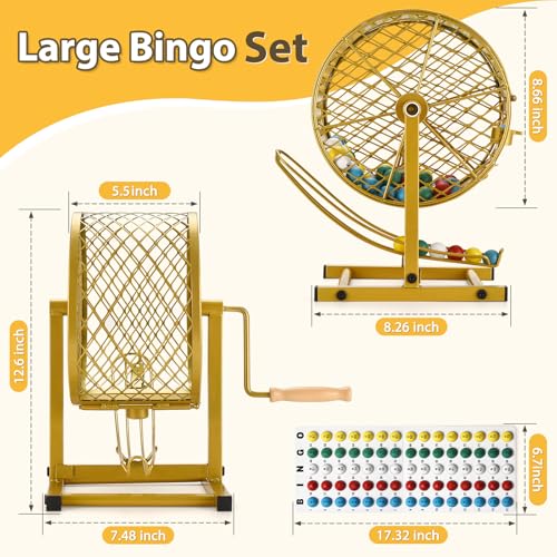 12.6″ Tall Bingo Game Sets with Steel Cage, Professional Bingo Game for Adults/Kids Includes Colorful Chips, 30 Cards and 75 Balls, Great for Fun Family, Large Groups, Parties