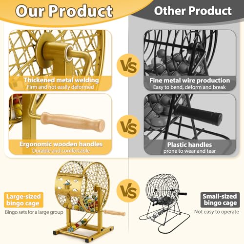 【Stable Rectangular Metal Base】: Unlike other flimsy wire bingo cages, our bingo game for adults is constructed with thickened welded high-quality metal, making it sturdier and more durable. The thickened and widened rectangular metal base ensures stability during bingo games, preventing tipping even with vigorous shaking and guaranteeing smooth gameplay. The reinforced structure ensures long-lasting use, making it ideal for frequent gameplay in bingo game for adults and kids, schools, or parties.