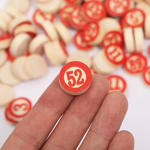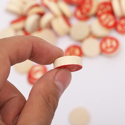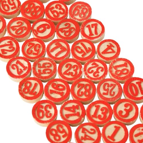 Vintage Tombola Tiles: Full set of standard Tombola tiles, numbers 1-90. Wooden pieces used in Tombola, Bingo, and lottery games as well as arts, crafts, and other games 90 Rustic Wooden Chips: These tiles are made of cuts of natural wood, numbers painted red to match traditional Tombola, and have a completely blank underside to be used as bingo chips Applicable Occasions: These bingo Chess are perfect for upcoming birthday party, holiday or family gathering, which are great for teens and adults of all ages Diy Arts, Crafts, & Games: These pieces can be used in arts & crafts such as scrapbooking, jewelry making, and home décor. Even add them to your own DIY board game and tabletop game projects Mini Wooden Pieces: Chess is about 1.8x0.6cm/0.71x0.24inch, standard size for Tombola games and calling boards. These bingo game pieces are substantial and enough to stand up to repeat use