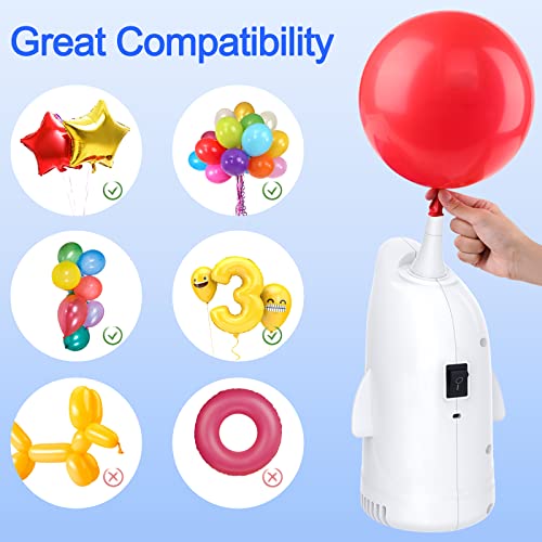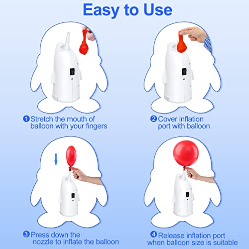 【PORTABLE AND LIGHTWEIGHT】: Only weights 1.45lb, this balloon inflators machine has a lovely penguin shape and very convenient to carry. Attention: This Balloon Inflator Pump suitable to a wide variety of round balloons and not applicable to long, twist, cartoon balloons. Please note that it only fills the balloon with air, not helium or hydrogen.