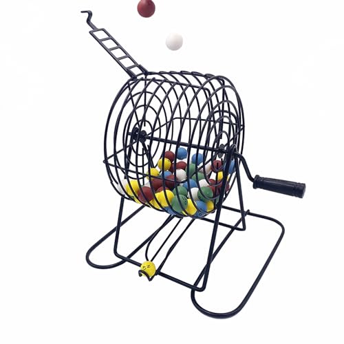 Deluxe Bingo Game Set-6 Inch Metal Cage, Master Board,75 Colored Balls, 50 Bingo Cards,500 6 Color Mix Chips and 2 Bags,Ideal for Large Groups