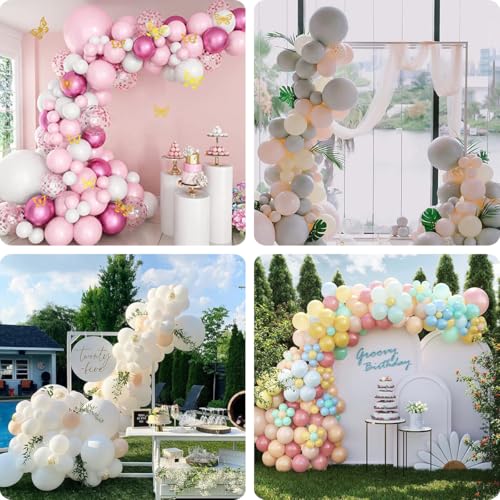 【Package List】 The electric balloon pump set includes: 1*electric balloon pump, 2*extended nozzles, 2*tying tools, 1*100 dot glues, 1*5m tape strips, 2*silver balloon ribbon, 1*User Manual —everything you need for decorating balloon party, saving you both money and time.