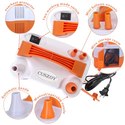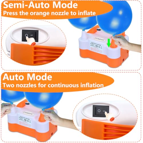 【Efficient + 2 Inflation Modes】 The CUSZOY electric balloon pump is equipped with a powerful 600W motor. Say good-bye to inflating balloons by hand or your lungs—this electric pump can fill up to 400 balloons in just one hour. You'll easily switch between two inflation modes: automatic for faster inflation and manual for precise speed keep watch over.