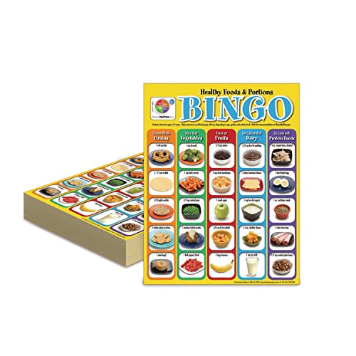 Promote USDA my plate and correct portion sizes with this colorful and fun bingo game for elementary-aged students. The images on the bingo cards are photographs of portions of healthy foods in each food Group, which help students identify what their plates and bowls full of food should look like. 30 laminated bingo cards, 8-1/2" x 11". appropriate for grades K-5.