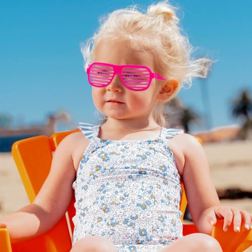 lunettes néon shutter shades rappellent immédiatement l’énergie des années 80 : musique entraînante, couleurs flashy et looks assumés. Les adultes y retrouvent une pointe de nostalgie, tandis que les enfants adorent leur côté déjanté et lumineux.