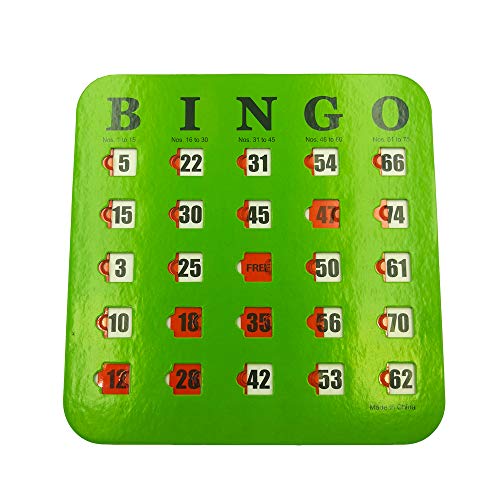 Each card is made of extra-thick stitched cardboard for durability, ensuring multiple and long-lasting use. The Shutter Slide Bingo Cards measure 6.8 inches x 6.7 inches and feature a large font that is easy to read for children and adults. The bingo set contains 5 trays of brightly colored bingo cards in red, orange, blue, purple and green. One of each color. There are red clear shutters above the number that won't obscure the numbers. NOTE: All numbers on the cards of the same color are duplicated, we don't suggest to order more than a pack The cards have a finger-tip shutter slide window that makes it easy to push and pull the shutter without using an ink bingo dauber or bingo chip. This can be reused many times. Ideal of all ages. Perfectly sized for easy carrying. Great for Bingo Games, Party Card Games, School Classroom Games, Family Gathering Activity, Casino Trip and more.